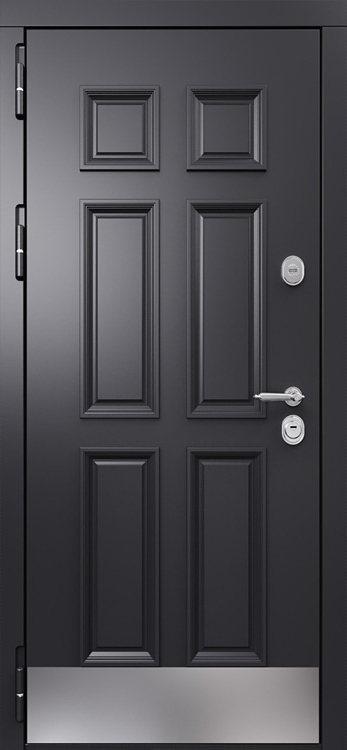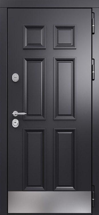 Входная дверь с МДФ №566 создана для тех, кто ценит прочность металла и уютный внешний вид в одном решении. Она одинаково хорошо вписывается в частный дом, квартиру или офис, подчеркивая солидность пространства и обеспечивая надежную защиту. Каркас и полотно собраны из профильных труб, усиленных ребрами жесткости, а стальной лист толщиной 2 мм гарантирует устойчивость к взлому и длительный срок службы. С обеих сторон дверь облицована МДФ панелями с ПВХ-покрытием, что делает поверхность более устойчивой к истиранию и мелким повреждениям, сохраняя привлекательность даже при интенсивной эксплуатации. Панели легко очищаются и не выгорают на солнце, благодаря чему дверь подходит и для уличной установки. Два контура уплотнения надежно защищают от сквозняков и посторонних запахов, а при необходимости можно дополнительно усилить конструкцию тепло- и шумоизоляцией. Модель №566 сочетает в себе сдержанный дизайн и функциональность, делая ее практичным выбором для самых разных помещений. Входная дверь с МДФ №566 от производителя: быстрое изготовление и монтаж в Александрове, индивидуальные размеры, широкий выбор материалов и фурнитуры, официальная гарантия до 10 лет.