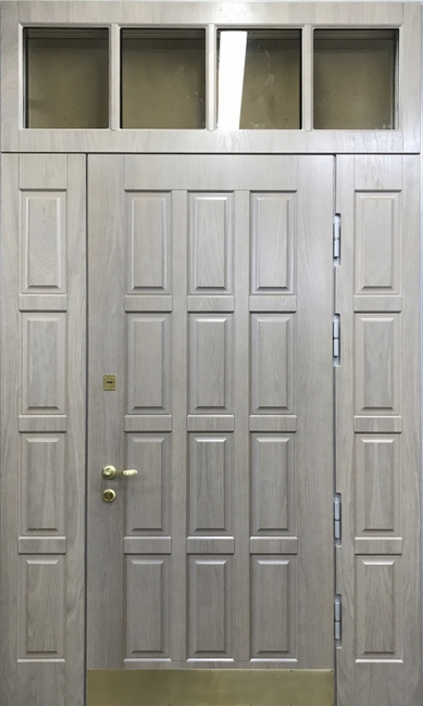 Входная дверь с остекленной фрамугой №1 привлекает внимание благодаря стильному и современному дизайну. Ее внешняя и внутренняя отделка из МДФ выглядит элегантно и долговечно, а также устойчива к механическим повреждениям, таким как царапины и вмятины. Каркас из профильной трубы и металл толщиной 2 мм гарантируют прочность и надежность. Наличие фрамуги позволяет создать эффектное освещение и визуально расширяет пространство, при этом сохранение теплоизоляции обеспечено двумя контурами резинового уплотнителя. Блокираторы и качественные замки, такие как Просам и Мосрентген, надежно защищают от взлома. Возможность дополнить дверь стеклопакетом, зеркалом или коваными элементами делает эту модель еще более универсальной для различных интерьеров. Входная дверь с остекленной фрамугой №1 от производителя: быстрое изготовление и монтаж в Александрове, индивидуальные размеры, широкий выбор материалов и фурнитуры, официальная гарантия до 10 лет.