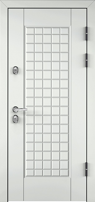 Белый цвет всегда символизирует чистоту и лёгкость, а на входной двери он ещё и подчёркивает современный вкус владельца. МДФ-плита с аккуратным вырезом «плитка» создаёт интересный декоративный эффект, благодаря которому строгая поверхность получает стильный рельеф и выглядит солидно как в частном доме, так и в офисном пространстве или городской квартире. Белая входная дверь МДФ с вырезом "плитка" в центре №532 изготовлена на основе прочного каркаса из профильной трубы с усиленными рёбрами жёсткости и металлическим листом толщиной 2 мм. Конструкция оснащена двумя замками российского производства — сувальдным Просам и цилиндровым Мосрентген, что обеспечивает надёжную защиту. При желании её можно дополнить зеркалом, коваными элементами, стеклопакетом или даже умными биометрическими замками. Такая дверь не только надёжна, но и способна стать выразительной деталью экстерьера или интерьера. Белая входная дверь МДФ с вырезом "плитка" в центре №532 от производителя: быстрое изготовление и монтаж в Александрове, индивидуальные размеры, широкий выбор материалов и фурнитуры, официальная гарантия до 10 лет.