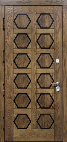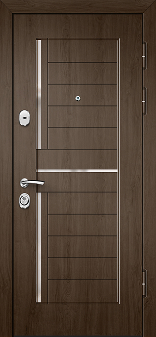 Глубокий оттенок венге всегда выглядит благородно и современно, а декоративная панель придаёт полотну завершённый стильный образ. Дверь МДФ цвета венге с внешней декоративной панелью №538 подходит для установки как в частных домах, так и в квартирах или офисах, где ценят сочетание надёжности и эстетики. Плиты МДФ отличаются прочностью, стойкостью к мелким механическим повреждениям и долго сохраняют первоначальный вид без потери насыщенности цвета. Конструкция выполнена на основе стального каркаса с листом металла толщиной 2 мм и рёбрами жёсткости, что обеспечивает высокий уровень прочности. Два контура уплотнения повышают комфорт эксплуатации, защищая от сквозняков. Дополнительно дверь можно оснастить шумо- и теплоизоляцией, зеркалом, стеклопакетом или коваными элементами, сделав её не только практичной, но и индивидуальной деталью интерьера. Дверь МДФ цвета венге с внешней декоративной панелью №538 от производителя: быстрое изготовление и монтаж в Александрове, индивидуальные размеры, широкий выбор материалов и фурнитуры, официальная гарантия до 10 лет.