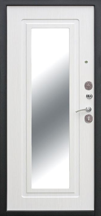 Надёжность металлической двери всегда в приоритете, но когда она получает дополнительное оснащение, результат становится особенно удобным. Входная дверь с зеркалом №78 удачно объединяет прочность конструкции и практичность деталей: массивный каркас из профильной трубы, лист стали толщиной 2 мм и усиленные рёбра жёсткости формируют крепкий защитный барьер, а зеркало на внутренней стороне делает её частью интерьера, экономя место и добавляя визуального простора. Снаружи используется молотковое напыление, устойчивое к царапинам и погодным перепадам, благодаря чему дверь подходит как для квартиры, так и для частного дома. Внутренняя отделка выполнена плитой МДФ, которая выглядит стильно и сохраняет аккуратность даже при активной эксплуатации. Два контура уплотнения помогают защитить помещение от сквозняков, а при необходимости конструкцию можно дополнить шумоизоляцией, современными замками и даже видеодомофоном. Входная дверь с зеркалом №78 от производителя: быстрое изготовление и монтаж в Александрове, индивидуальные размеры, широкий выбор материалов и фурнитуры, официальная гарантия до 10 лет.