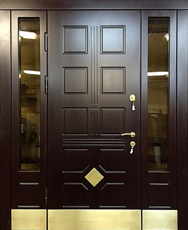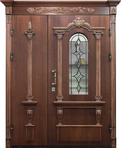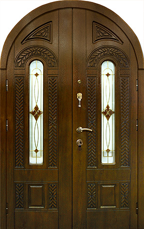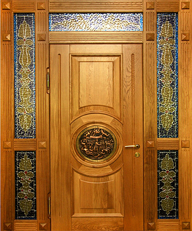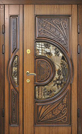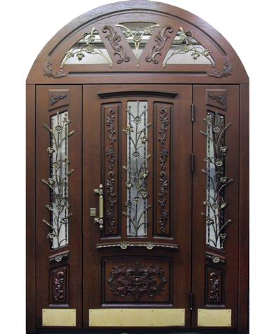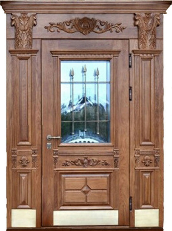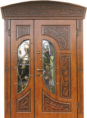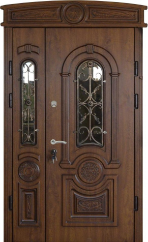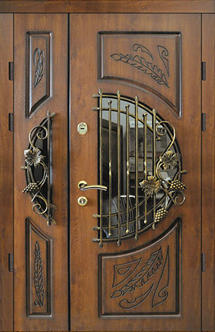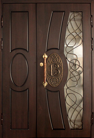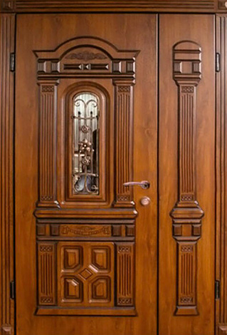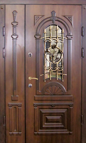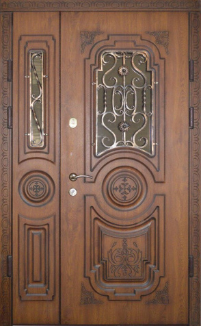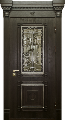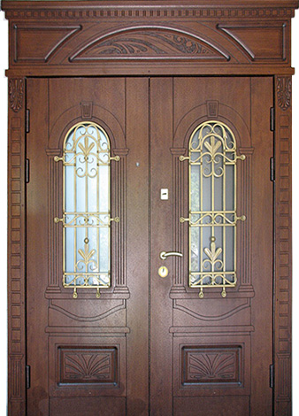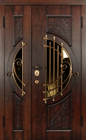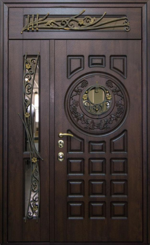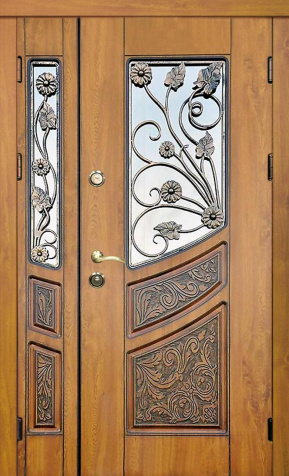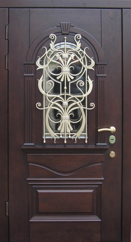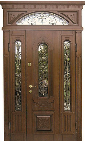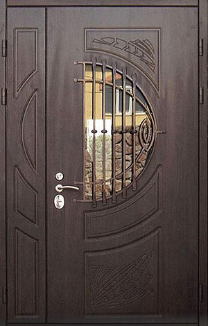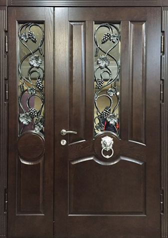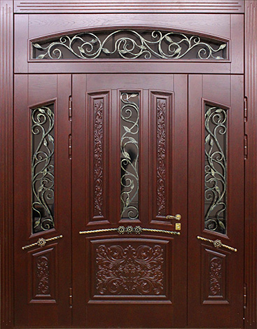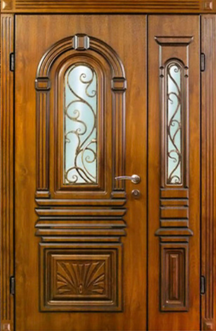 Входная дверь со стеклом и ковкой для загородного дома №16