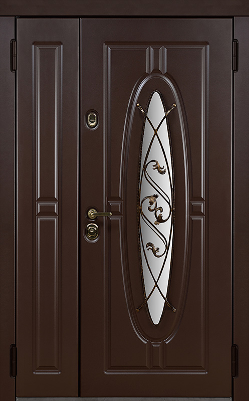 Двойная уличная дверь с овальным стеклом и художественной ковкой №14 — это уникальное сочетание функциональности и эстетики. Панели МДФ с ПВХ-покрытием, используемые как для внешней, так и для внутренней отделки, обладают высокой стойкостью к внешним воздействиям, сохраняя свой внешний вид на долгие годы. Внешний декор в виде художественной ковки придаёт двери особый шарм, подчеркивая её стиль и индивидуальность. Двойная уличная дверь с овальным стеклом и художественной ковкой №14 от производителя: быстрое изготовление и монтаж в Александрове, индивидуальные размеры, широкий выбор материалов и фурнитуры, официальная гарантия до 10 лет.