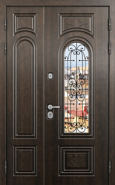 Двупольная стальная дверь со стеклопакетом и кованым узором №24 станет отличным выбором для тех, кто ценит не только безопасность, но и стиль. Внешняя и внутренняя отделка выполнены из МДФ, что придает двери элегантный и современный вид, а также обеспечивает высокую устойчивость к механическим повреждениям и износу. Стеклопакет и кованые элементы добавляют изысканности и уникальности, при этом сохраняя прочность конструкции. Двупольная стальная дверь со стеклопакетом и кованым узором №24 от производителя: быстрое изготовление и монтаж в Александрове, индивидуальные размеры, широкий выбор материалов и фурнитуры, официальная гарантия до 10 лет.