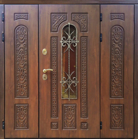 Сочетание надежной конструкции и декоративной выразительности делает входную металлическую дверь с ковкой и стеклом №20 удачным выбором для частных домов и коттеджей. Полотно собрано из профильных труб и усилено стальным листом толщиной 2 мм, дополнено ребрами жесткости и блокираторами, что обеспечивает прочность и устойчивость к нагрузкам. Два контура уплотнителя защищают от сквозняков и влаги, а по желанию доступна дополнительная шумо- и теплоизоляция. Отделка выполнена панелями МДФ ПВХ, стойкими к механическим повреждениям и перепадам температуры, благодаря чему дверь долго сохраняет свежий вид без потери эстетики. Особый акцент создают стеклянные вставки с коваными элементами, придающие входной группе парадность и индивидуальность. Такая дверь не только надежна в эксплуатации, но и подчеркивает стиль всего фасада. Входная металлическая дверь с ковкой и стеклом №20 от производителя: быстрое изготовление и монтаж в Александрове, индивидуальные размеры, широкий выбор материалов и фурнитуры, официальная гарантия до 10 лет.