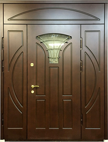 Входная металлическая дверь для частного дома со стеклом и ковкой №29