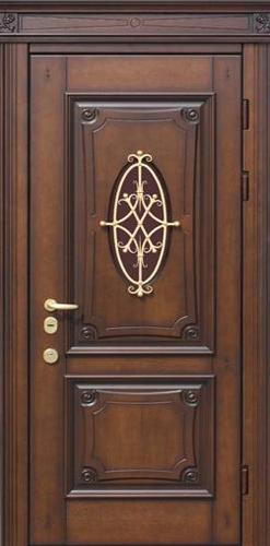 Входная металлическая дверь для частного дома со стеклом и ковкой №29