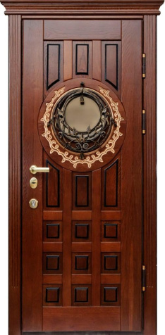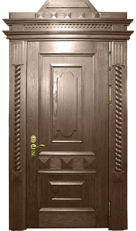 Эксклюзивная глянцевая дверь в частный дом с нестандартной фрезеровкой №24