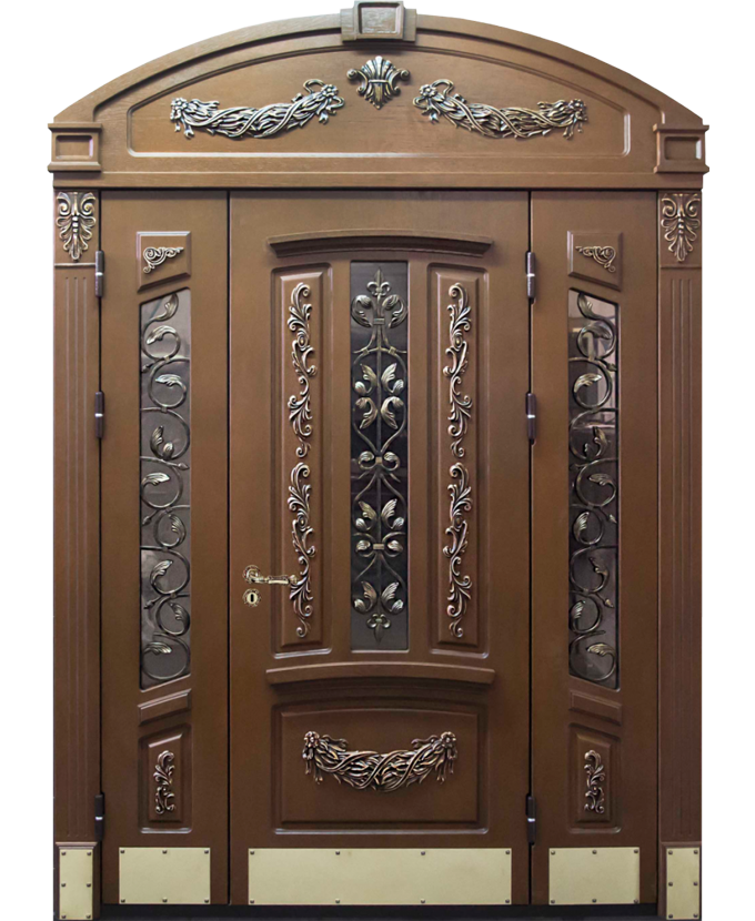 Арка придаёт входу особый характер и сразу выделяет дом среди соседних построек. Арочная входная дверь стеклопакет для загородного дома сочетает в себе статусность массивного дуба и современную практичность стеклопакета, который наполняет прихожую естественным светом и визуально облегчает массивное полотно. Стальной каркас с листом металла толщиной 2 мм и ребрами жёсткости обеспечивает надёжность, а два контура уплотнения защищают от сквозняков. Терморазрыв в коробке и полотне предотвращает промерзание, что особенно актуально для эксплуатации в загородных коттеджах. Натуральный дуб в отделке не только долговечен, но и устойчив к повреждениям, сохраняя презентабельный вид долгие годы. Такая дверь подчёркивает архитектурный стиль дома и позволяет совместить изысканность формы с практичностью современных технологий. Арочная входная дверь стеклопакет для загородного дома от производителя: быстрое изготовление и монтаж в Александрове, индивидуальные размеры, широкий выбор материалов и фурнитуры, официальная гарантия до 10 лет.