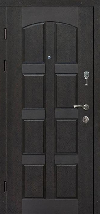 Входная дверь для дома уличная №18 разработана для установки в условиях, где от двери требуется максимум прочности и устойчивости к погодным испытаниям. Молотковое напыление на внешней стороне не только придает фактурный декоративный эффект, но и защищает поверхность от влаги, ударов и мелких повреждений, сохраняя привлекательный вид долгие годы. Внутри дверь отделана панелями МДФ с ПВХ-покрытием, которые отличаются стойкостью к царапинам и удобством в уходе, а также гармонично вписываются в любой интерьер прихожей. Каркас и полотно выполнены из профильных труб, усиленных стальным листом толщиной 2 мм и дополнительными ребрами жесткости, что делает конструкцию надежной и долговечной. Два контура резинового уплотнителя эффективно защищают от сквозняков и уличной пыли. Особое внимание заслуживает наличие терморазрыва в коробке и полотне: эта технология предотвращает промерзание и образование конденсата, обеспечивая сохранение тепла даже в сильные морозы. Входная дверь для дома уличная №18 от производителя: быстрое изготовление и монтаж в Александрове, индивидуальные размеры, широкий выбор материалов и фурнитуры, официальная гарантия до 10 лет.